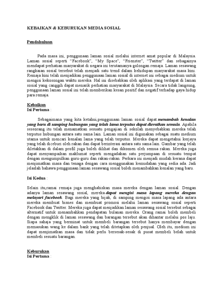 Karangan Kebaikan Dan Keburukan Media Sosial Madalynngwf